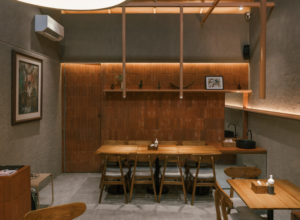 Setting up shop at the forefront of one of Blok M’s busiest streets is as good a place as any to start, even if it is marred with competition. The bijou and eye-catching building designed by architectural firm LeJ Dessinees effectively doubles as advertisement, with every element tying back to the simple enjoyment of satay; from the deliberately skewed façade, mimicking the folds of takeaway satay wrapping, to the swivelling rattan window blinds that nod to the handheld fan used to stoke the flames of the grill.